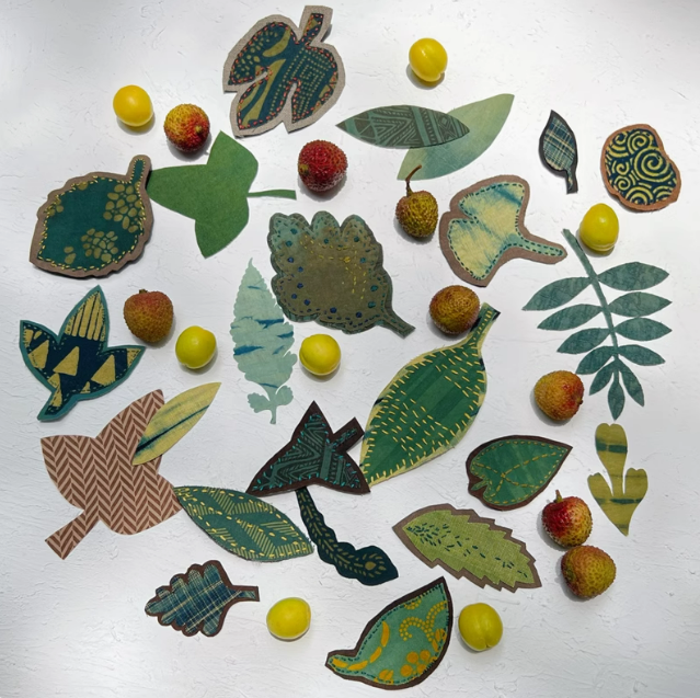 Bolsa espaciosa de algodón con hojas estampadas a mano